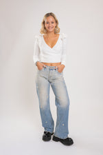 Jeans hlače PEARL združujejo elegantno dolgo in ravno silhueto z nežnimi perlicami, ki diskretno poudarijo prefinjenost oblikovanja. Idealne za sodobno garderobo, kjer se brezčasni detajli srečajo z izvrstno kakovostjo in stilom.