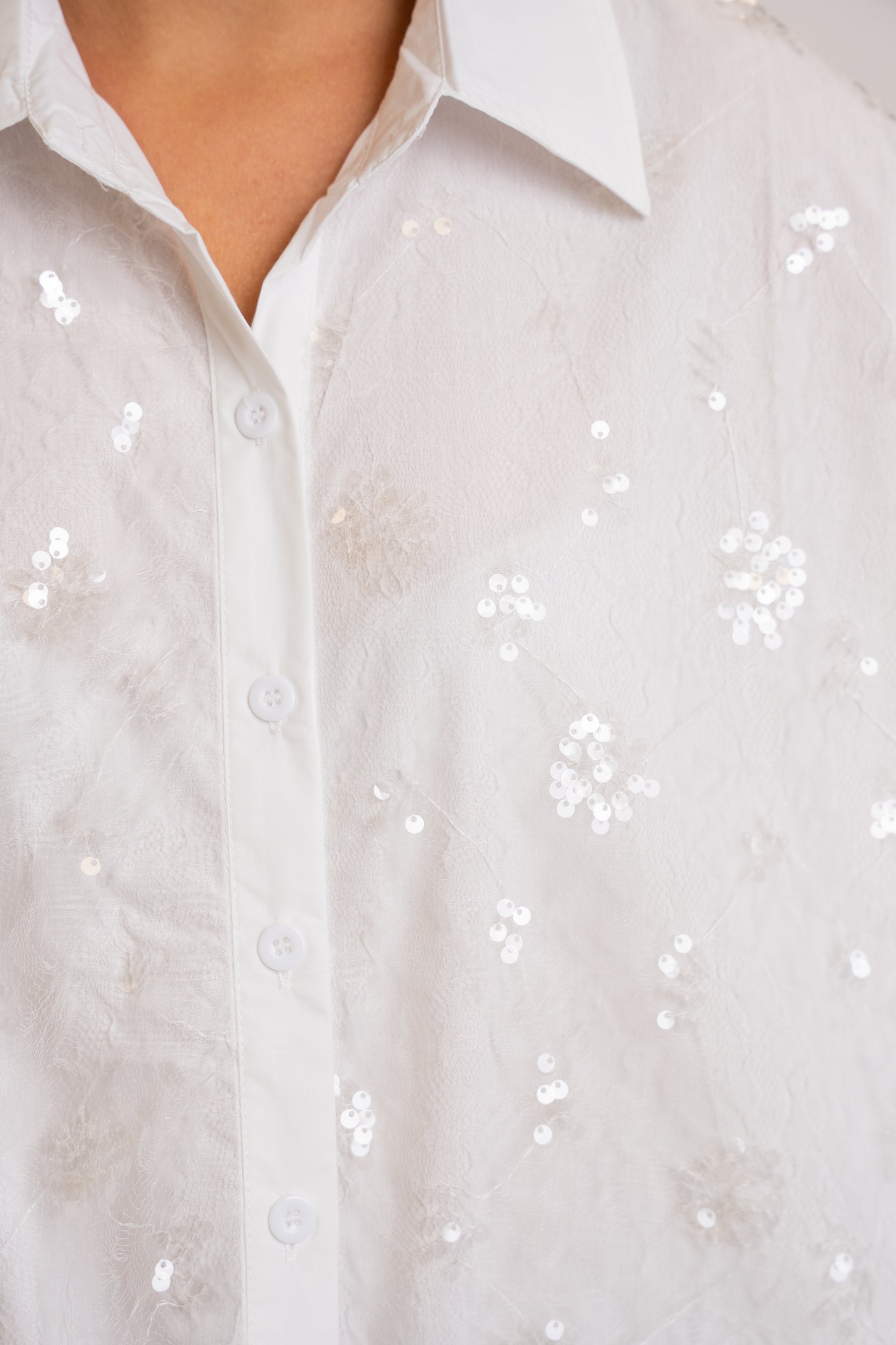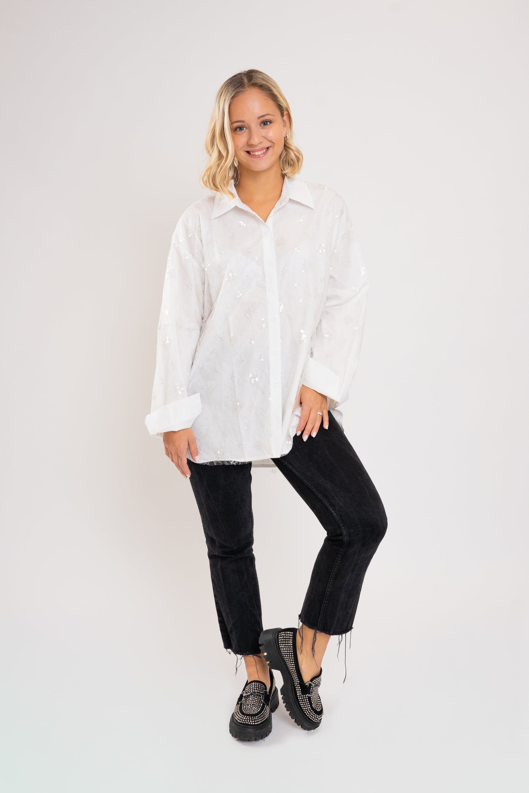 Mreža, bleščice in doza samozavesti. Ta srajca je tvoj "go-to" kos, ko želiš ustvariti lahkoten a trendovski videz.