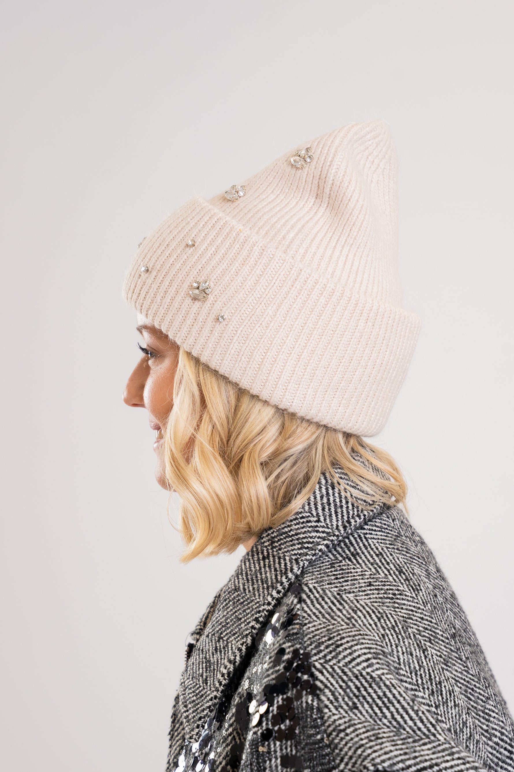 Osvajajte z drznim slogom z našo kapo KRISTAL v nežni bež barvi, obogatena s sijočimi kristalčki. Ta kapa ne le greje, ampak tudi izstopa, saj doda kanček drznosti vsakemu outfitu. Pripravite se, da pritegnete poglede in izrazite svojo edinstveno samozavest s tem prefinjenim modnim dodatkom.