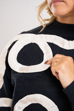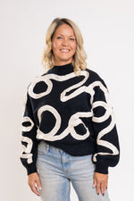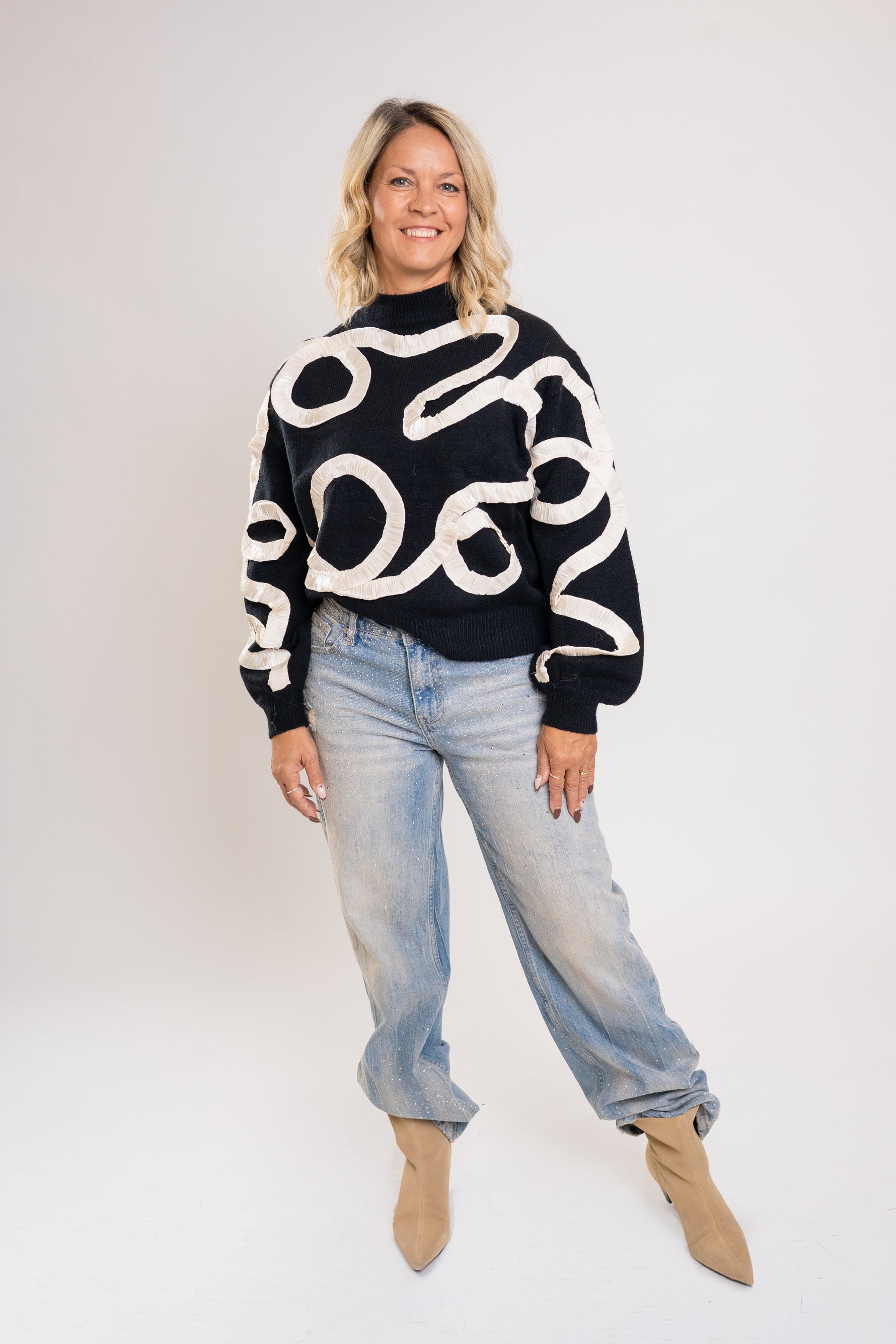 Izstopaj s tem izjemno mehkim in toplim črnim puloverjem, ki ga krasijo drzni beli vzorci. Ta ekstravaganten kos združuje udobje in neodvisen slog, popoln za tiste, ki radi postavljajo trende.